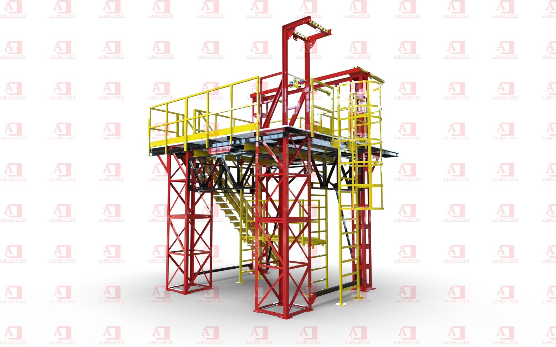Доступ на рабочую площадку второго уровня осуществляется по стальной маршевой лестнице.